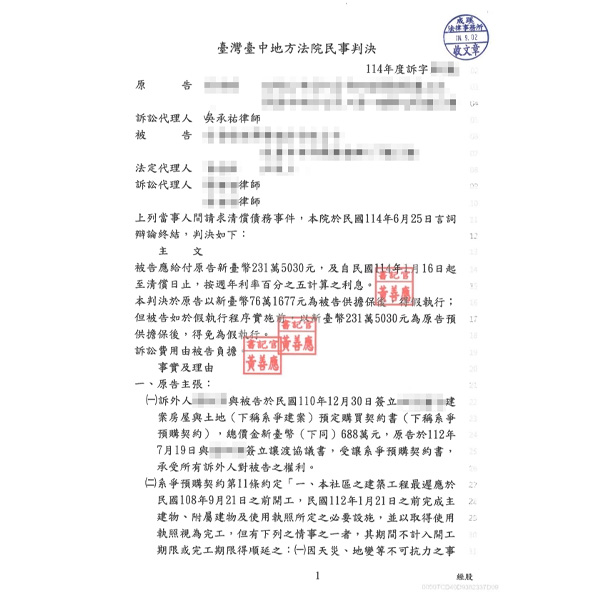 預售屋遲延交屋 委任人成功解約並全數勝訴